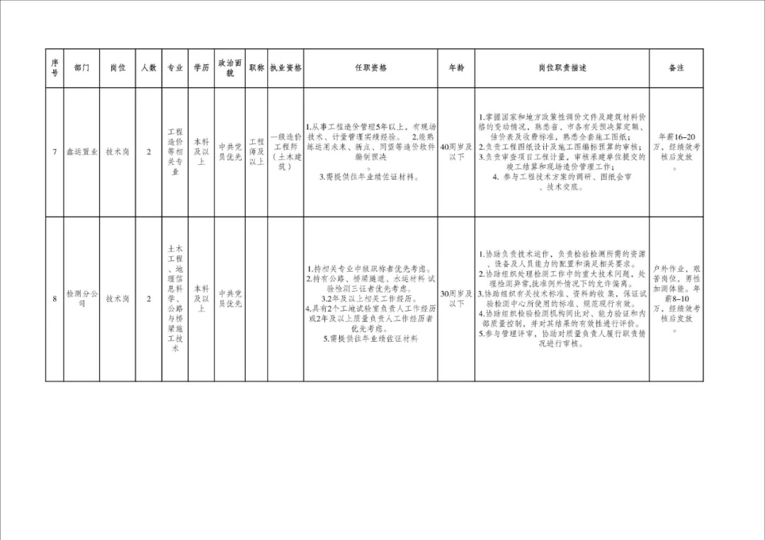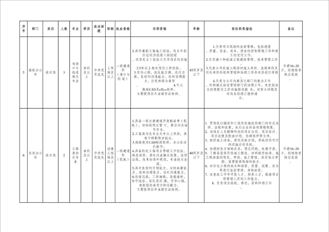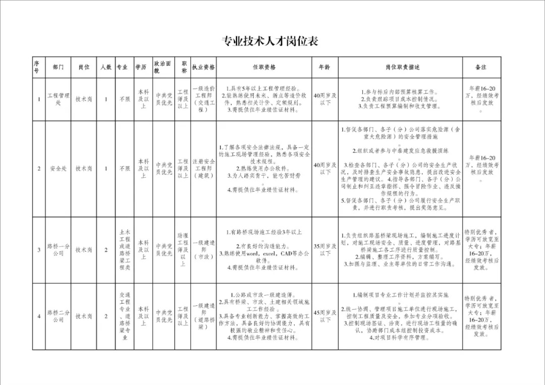 公开招聘持有一级建造师等资格证书、具有项目管理经验和一定业绩的专业技术人才15名,具体要求详见附件(专业技术人才岗位表)。