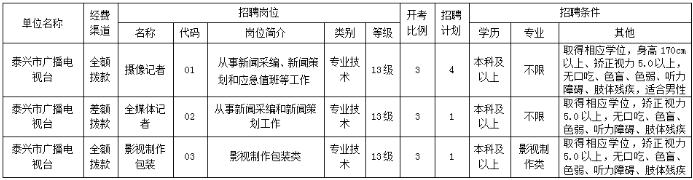 1.《泰兴市广播电视台公开招聘工作人员岗位表》