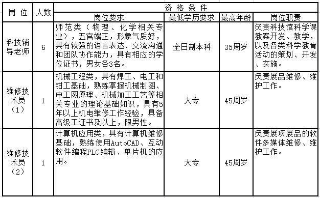 泰州科技馆因工作需要,面向社会公开招聘8名编外用工人员,现将有关事项在新泰州人才网公布如下: